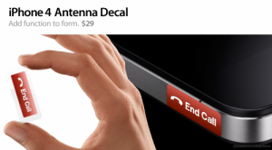 While the whole world is trying to remove the antenna issue, a smart decal manufacturer created a new product that turns the design error into a new feature. Consumers who are interested can buy an ‘End Call’ decal to apply on their iPhone 4’s.