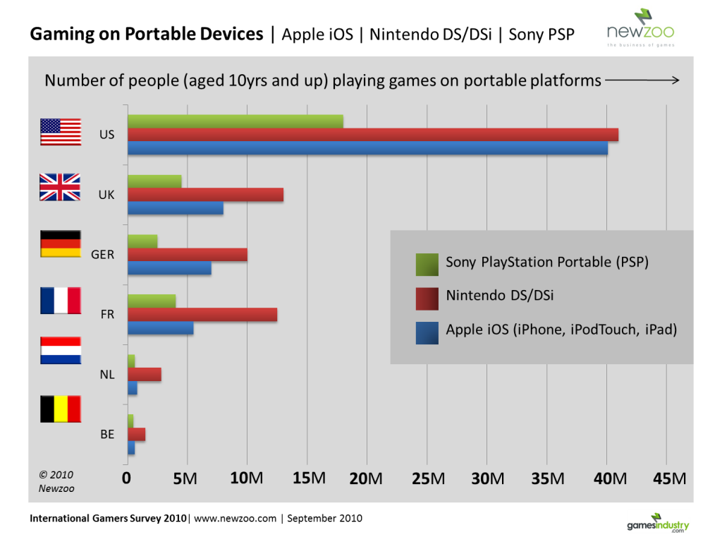 Netherlands: 0.8 million iOS gamers, 2.8 million DS/DSi gamers, 0.6 million PSP gamers