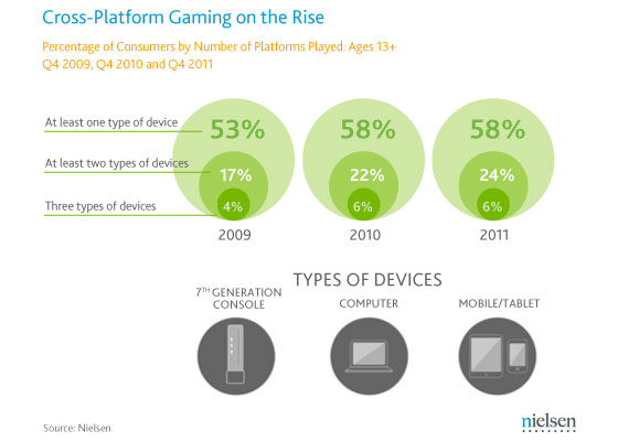 According to new research at Nielsen, iOS devices upped total playtime by seven percent year-on-year between 2011 and 2012. The study also shows that iOS devices are very popular with handheld gamers.